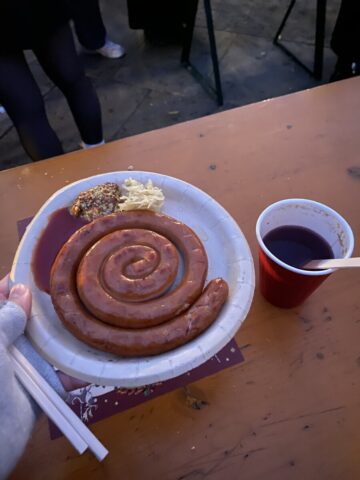 ホットワイン飲んでぐるぐるソーセージ食べて